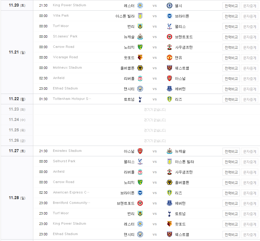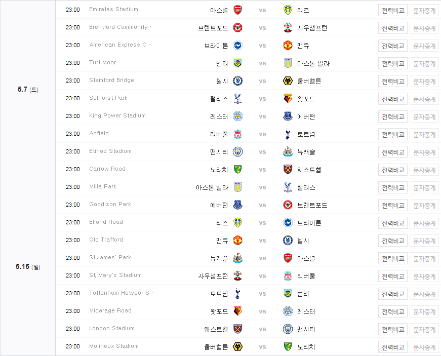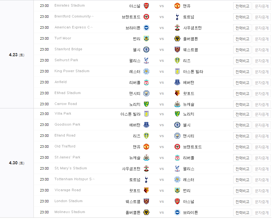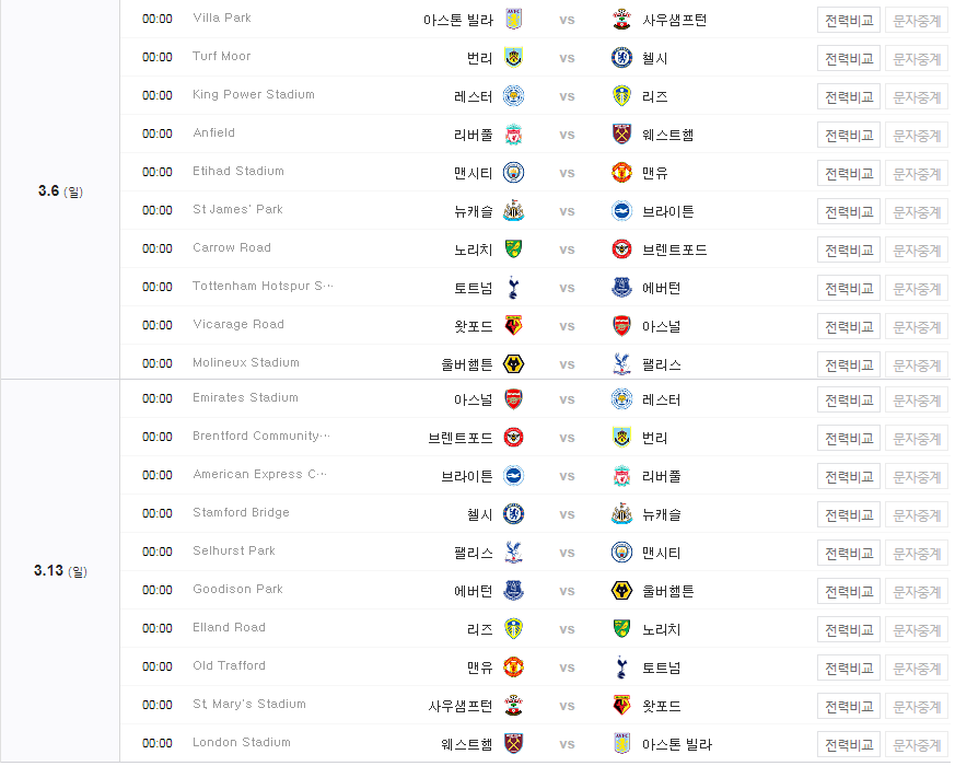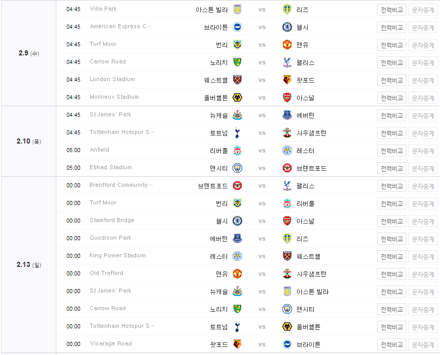 방송사 EPL 프리미어리그 경기 일정 당근당근뉴스 2021. 11. 15. 22:55 프리미어리그 일정 (2021-2022) 목차 프리미어리그 경기일정(2021) 11월 11월 12월 12월 2022년 1월 1월 2월 2월 3월 3월 4월 4월 5월 5월 프리미어리그 중계보기 20-21 EPL 중계방송 바로시청 공유하기 게시글 관리 CarrotNews 저작자표시 동일조건 (새창열림) '방송사' Related Articles 이라크전 축구 중계방송 생중계 쿠팡플레이 tv로 보는 방법 EPL 프리미어리그 중계 사이트 보기 중계방송(2021-2022) kbs 온에어 바로가기