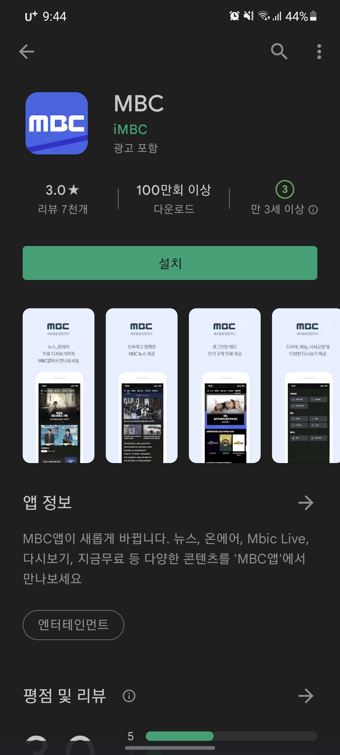 어플 설치를 하시면 MBC 방송을 포함해서 여러가지 방송 시청이 가능 합니다. 시청 가능한 방송 목록을 살펴 보자면