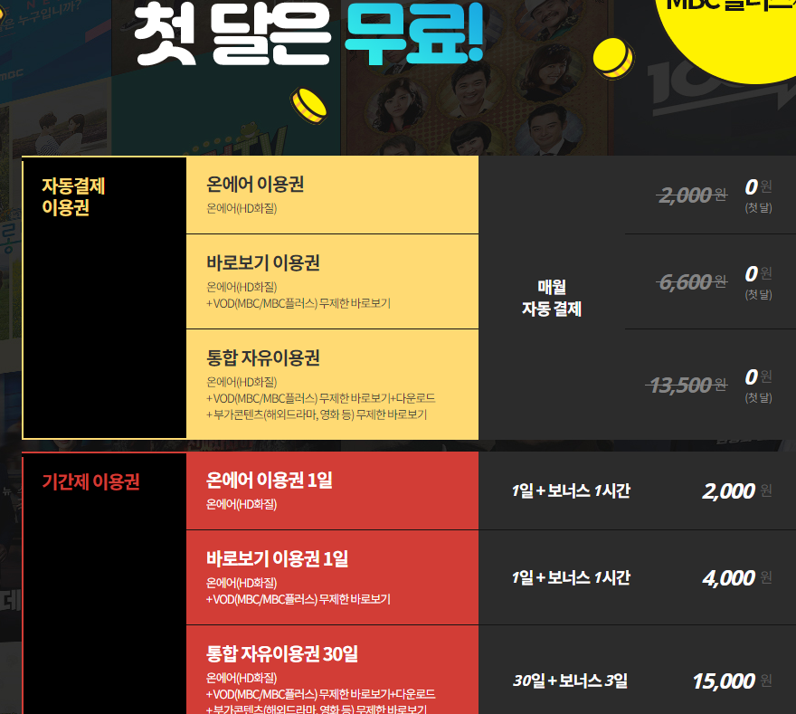 고화질로 온에어를 시청하시기를 원하시는 분들은 고화질 이용권 결제를 통해서 시청을 하셔야 합니다. 결제를 하면 한달 무료 행사를 진행을 하고 있으니, mbc에서 방송을 하는 프로그램 혹은 드라마 예능을 좋아하시는 분들은 결제를 통해서 다시보기 온에어 보기 서비스를 이용하는 것도 좋은 방법이라 생각이 됩니다.